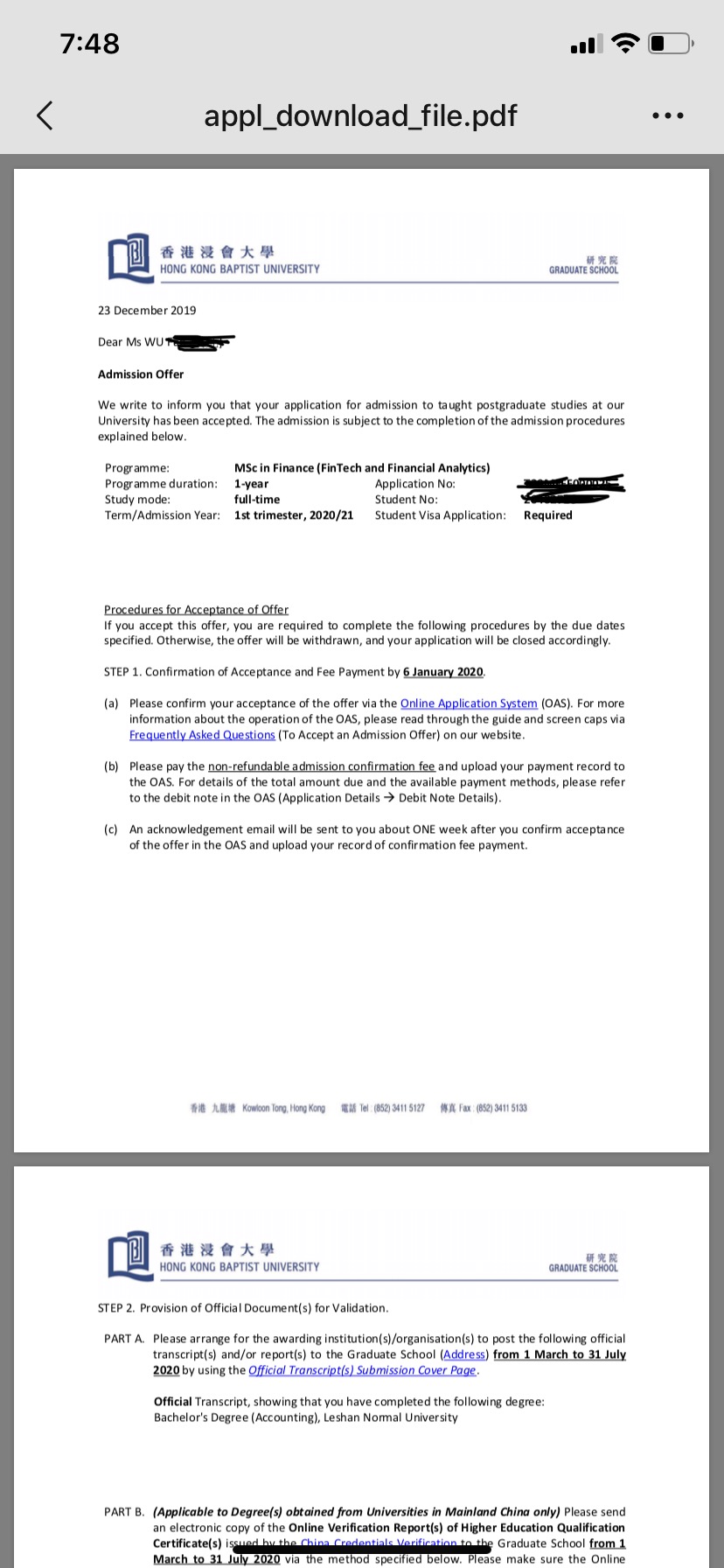 恭喜峨眉校區吳凡同學(xué)獲得卡迪夫大學(xué),香港浸會(huì )大學(xué)金融碩士錄取通知書(shū)?。?!